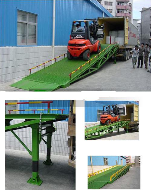 本產(chǎn)品是與叉車配合使用的貨物裝卸專用輔助設(shè)備。有了它,叉車能直接從地面駛?cè)肫囓噹麅?nèi)部進(jìn)行批量裝卸作業(yè)。產(chǎn)品采用人工液壓動(dòng)力,不需接動(dòng)力電源。只需單人操作,即可實(shí)現(xiàn)貨物的**快速裝卸。它可使企業(yè)減少大量勞動(dòng)力,成倍提高裝卸作業(yè)效率,加快貨物流通速度,獲取更大經(jīng)濟(jì)效益。